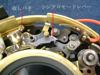 邪魔になる部品の返しバネ・シンクロモードレバーを外します。