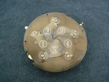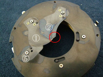 5枚の内、5と2の羽根(セクター)の先端に衝突防止の工夫がされている。