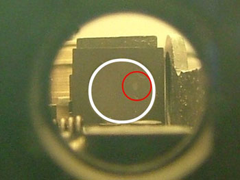 確かに覗けば合致円の右上(赤丸部)に病変が見えます。