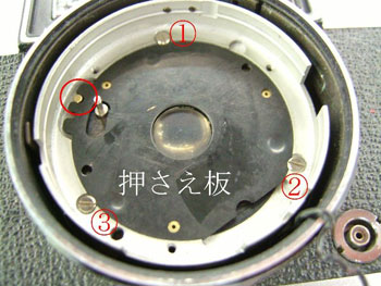 1から3のネジを外しますと、シャッターが前後に分離します。