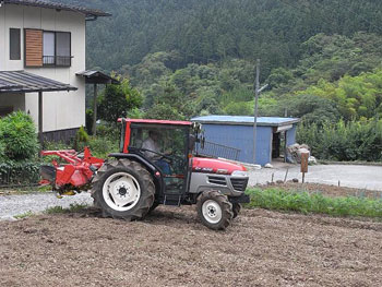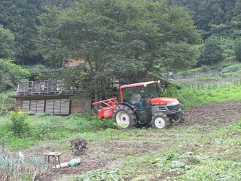 大型トラックターは入れず、自前の耕耘機でチマチマの作業となりました。