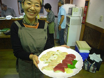 骨切りで刃がこぼれてしまいますから、砥石を持参。序でにMy包丁も研いで 頂きました。