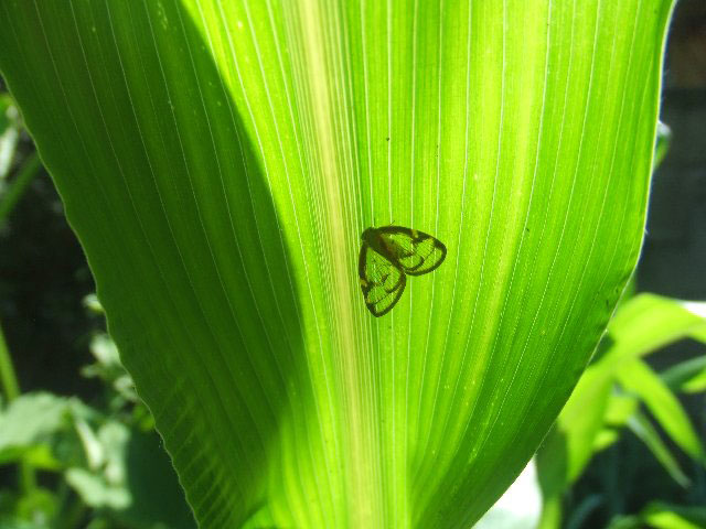 そんなトウモロコシに見慣れない虫がいました。羽根が透明なのです。新たな害虫でしょうか?分からん。