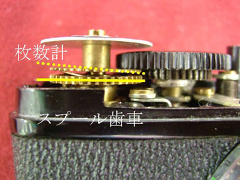 枚数計の位置も90度程(点線位置)ずれております。巻き上げた時にゼロと40が実線の位置に在るのが正しいのです。
