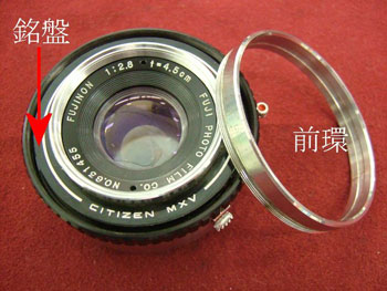 銘盤は前群レンズにしっかりと接着されている。溶剤であるMEK(メチル・エチル・ケトン)で緩める。