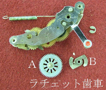 セルフタイマーのラチェットB歯車の先端が摩耗して、順・逆動き放題なのです。