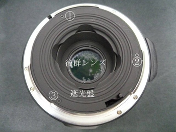遮光盤を外し、後群レンズを外す。カビを育てちゃいましたね!