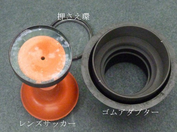 この場合も固定する径より、押さえ環の径が大きいのでゴムアダプターを活用した方が、小さな力で済みます。
