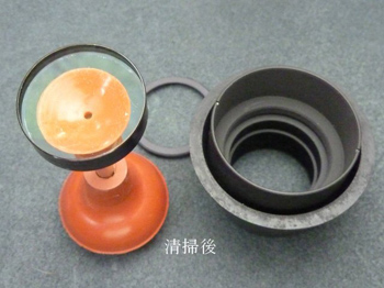 簡易に押さえ環を外さずにカビ清掃をすると、押さえ環に覆われている部分のカビが残る。