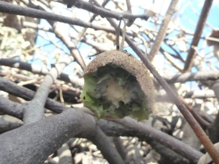 キウィーは雌雄異株ですから結実させるには雌雄の樹が必要です。受粉は自然に任せていました。所が情報によりますと人工受粉させた方が実は大きく甘くなると言うのです。