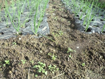 玉葱畑に雑草が目立ちます。早めに除草をすることにしました。