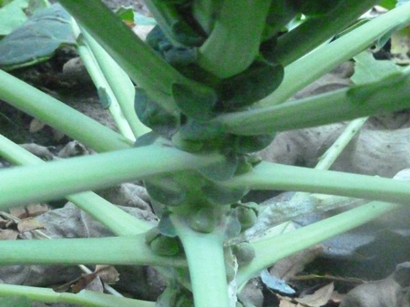 芽キャベツが徐々に成長し葉元に変化が現れました。間もなく結球していくのでしょうか?
