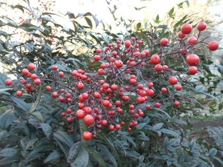 正月飾りにもなります南天が庭に彩りを添えていました。