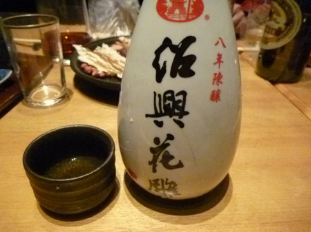 店主の中国土産紹興酒。年輪を重ねた8年は伊達では無く、眠りの中で円やかさと香りを得て、それはそれは美味しゅう御座ります。