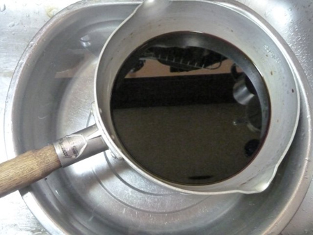 先ずは蕎麦汁作りと甘強昔作り味醂216ccを煮きり三温糖216gを溶かします。