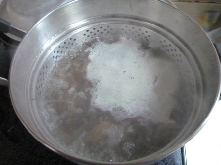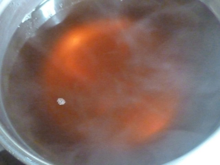 其処へそば膳800ccを加えアクを掬いながら沸騰寸前で火を止め冷やしています。