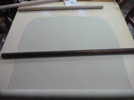 幸先が良いですね!俎板の長さの寸法に伸して畳むことが出来ました。