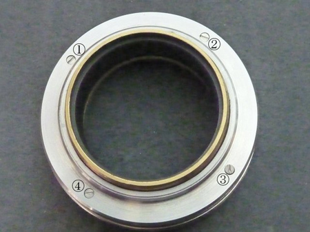 レンズマウント側の4本ネジを緩めると、直進キーが取り付けられている環が緩むようです。
