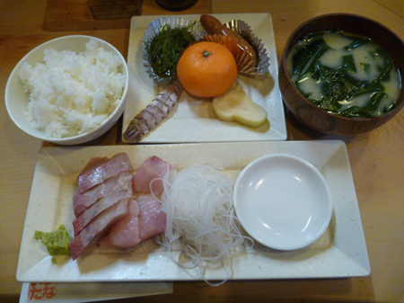 刺身を注文するとヒラマサでした。確かな目で仕入れましたヒラマサは美味しゅう御座いました。前菜のタラコの煮付け、唸る美味しさでした。