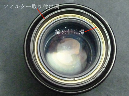 ヘリコイドを近距離側に繰り出し、真鍮製の締め付け環を外します。