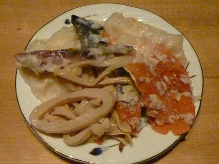 ブリの蕪漬け、イカと鮭の麹漬けです。何処からもなくワインより日本酒の声が上がります。店主、日本酒は封印してあるから出ませんよ!となり、声が小さくなった次第です。