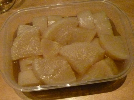 好き嫌い女王が練馬で育てました大根のコンソメ煮を持参しました。一緒に持参されたキノコベースのドレッシングで戴きます。