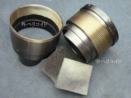 ヘリコイド部と鏡筒部とに分かれ、飾り環も外しておきます。