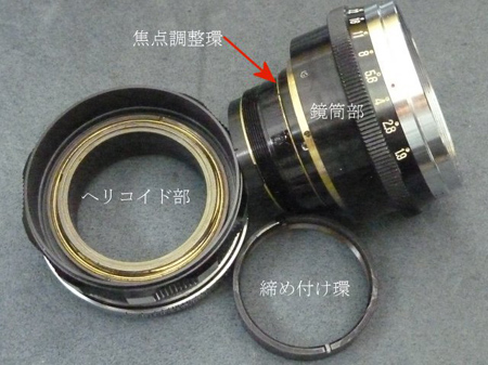 ヘリコイド部と鏡筒部の間には個体固有の焦点調整環が入っています。