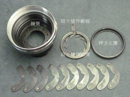 絞り羽根に油分の湿潤がみられます。洗浄後組み立てますが、絞り値作動環に違和感が無いかを確認しておく事が大事です。