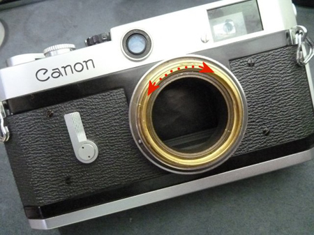 締付環を外しますとヘリコイド部と鏡筒部とに分離しますのはM39の特徴です。