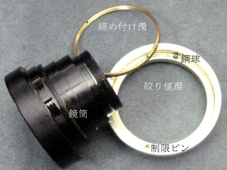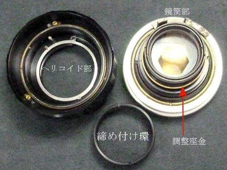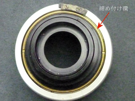 締め付け環を外すとヘリコイド部と鏡筒に分離されますが、個体固有の調整座金の組み込み忘れや紛失には注意が必要です。