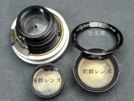 社名環の固定にカラクリがありませんでしたので分離して、前群レンズを外します。
