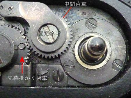 巻き上げると中間歯車を介して先幕掛かり歯車が回ります。