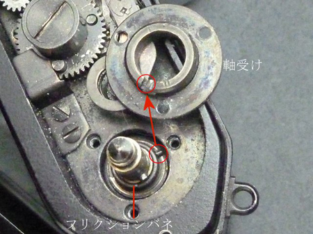 フリクションバネの突起が軸受けの凹みに咬合するとフリクションバネが働きます。