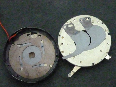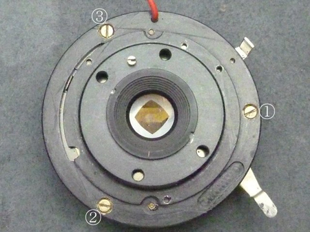 赤○部はシャターセットの過不足を修正する偏芯盤がネジで固定されている。