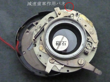 減速歯車作用バネを除いた2ヶ所を外しておくことにします。