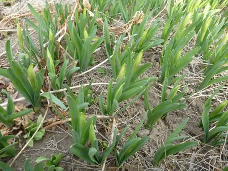 昨年、増えすぎたラッパ水仙を分球したら蕾を沢山付けました。