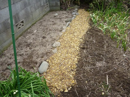 砕いたチップは雑草対策として手入れ通路に敷きました。