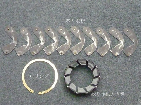 組み込み順に絞り羽根を並べ溶剤で洗浄し、再組み込みを致します。
