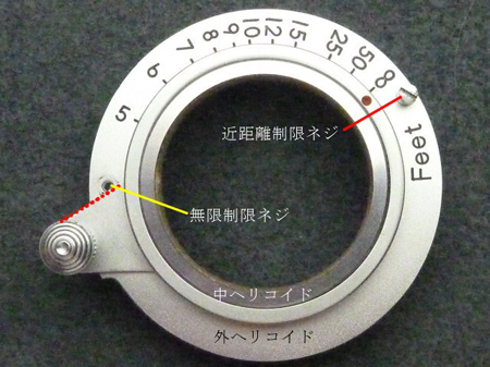 無限制限ネジを外しますと中ヘリコイドが少し時計方向に回転し、終端位置になります。