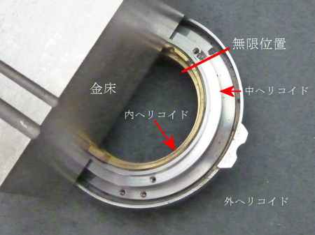 そこで中ヘリコイド上に金床を置き、内ヘリコイドを回転させ中ヘリコイドと一線上になるようにして印を付けます。