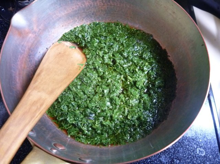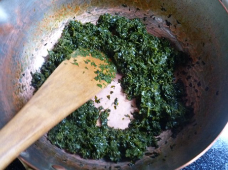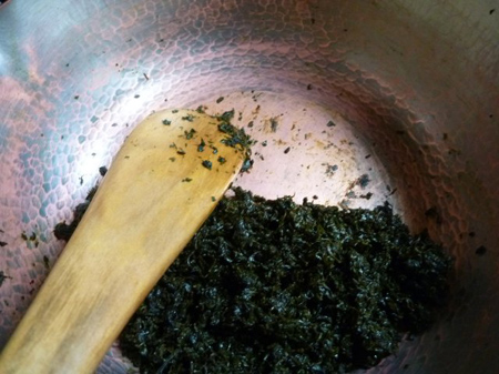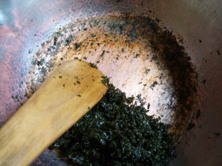 綺麗になりました。もう水分が飛んでいくジュージューの音は聞こえません。もそっと水分を飛ばしたいですね!最小の火に落と消したり点けたりして最後の仕上げです。