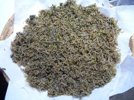 作りました木の芽の佃煮と冷凍保存しておいた青実山椒とちりめんを合わせてみました。