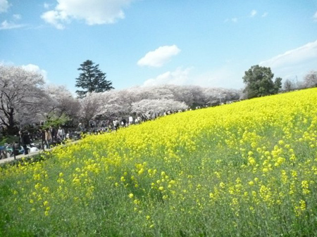 毎年権現堂堤はTV報道され、菜の花との対比が奇麗で多くの方が観桜に訪れます。