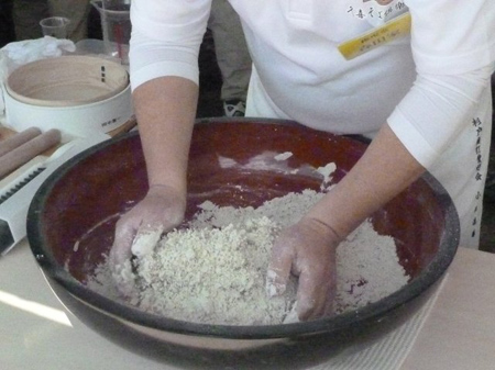 同じ趣味の隠居人としては気になります土地の蕎麦打ち同好会が実演をしておりました。
