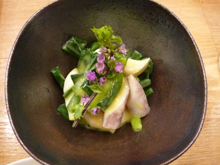 酢味噌は注文客が多いのか?寝かせることで熟成するのか?瀬戸製の甕に仕込んであり、優しい酢味でした。合わせたのは玉葱とネギの雑交配の“わけぎ“。ゲソ共々甘く柔らかく美味でした。
