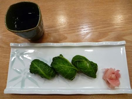 お品書きから選びましたのは高菜の浅漬けの葉で包みました熊野地方の郷土料理「めはり寿司」です。
