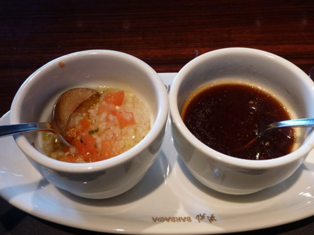 付随してきたステーキソース。右は一般的なソースでした。左のビネガーソースがとても美味しくドレッシングとしても美味しかったです。