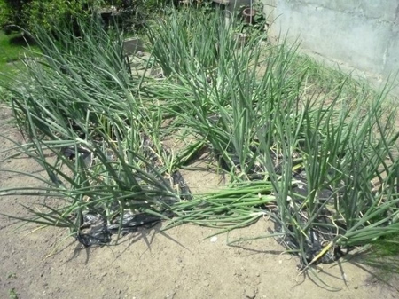 玉葱の習性は面白い。成熟した合図として倒れるのです。