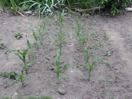 トウモロコシは不揃いの成長ではありますが元気です。